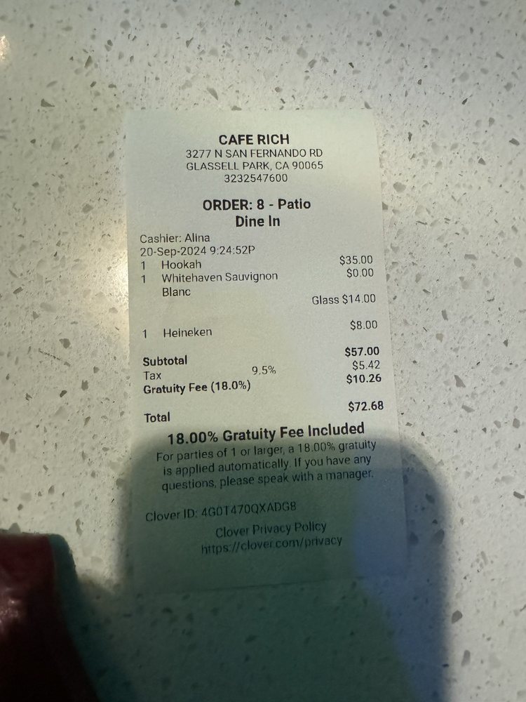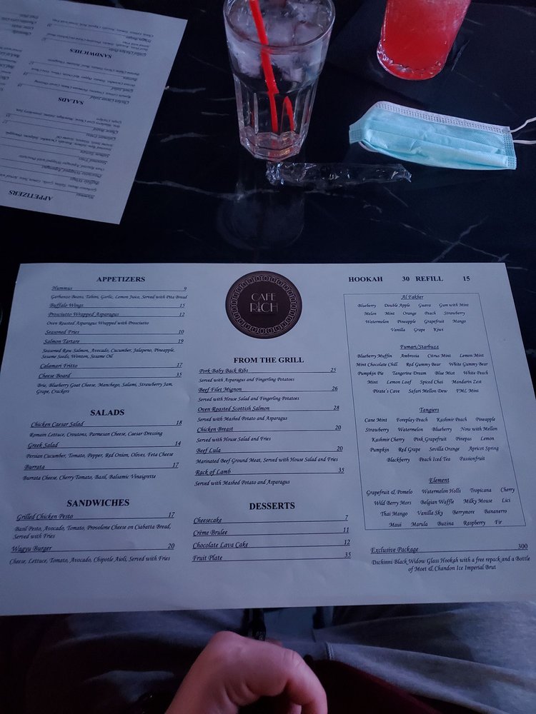 The ambiance is warm and inviting, enhanced by attentive service and outdoor seating. With enticing cocktails and a range of hookah flavors, Cafe Rich is the ultimate destination for relaxation and enjoyment. Your taste buds will thank you!